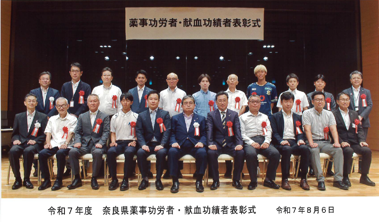 令和7年8月6日に開催されました「令和7年度 奈良県薬事功労者・献血功績者表彰式」において「厚生労働大臣感謝状」を頂きました。