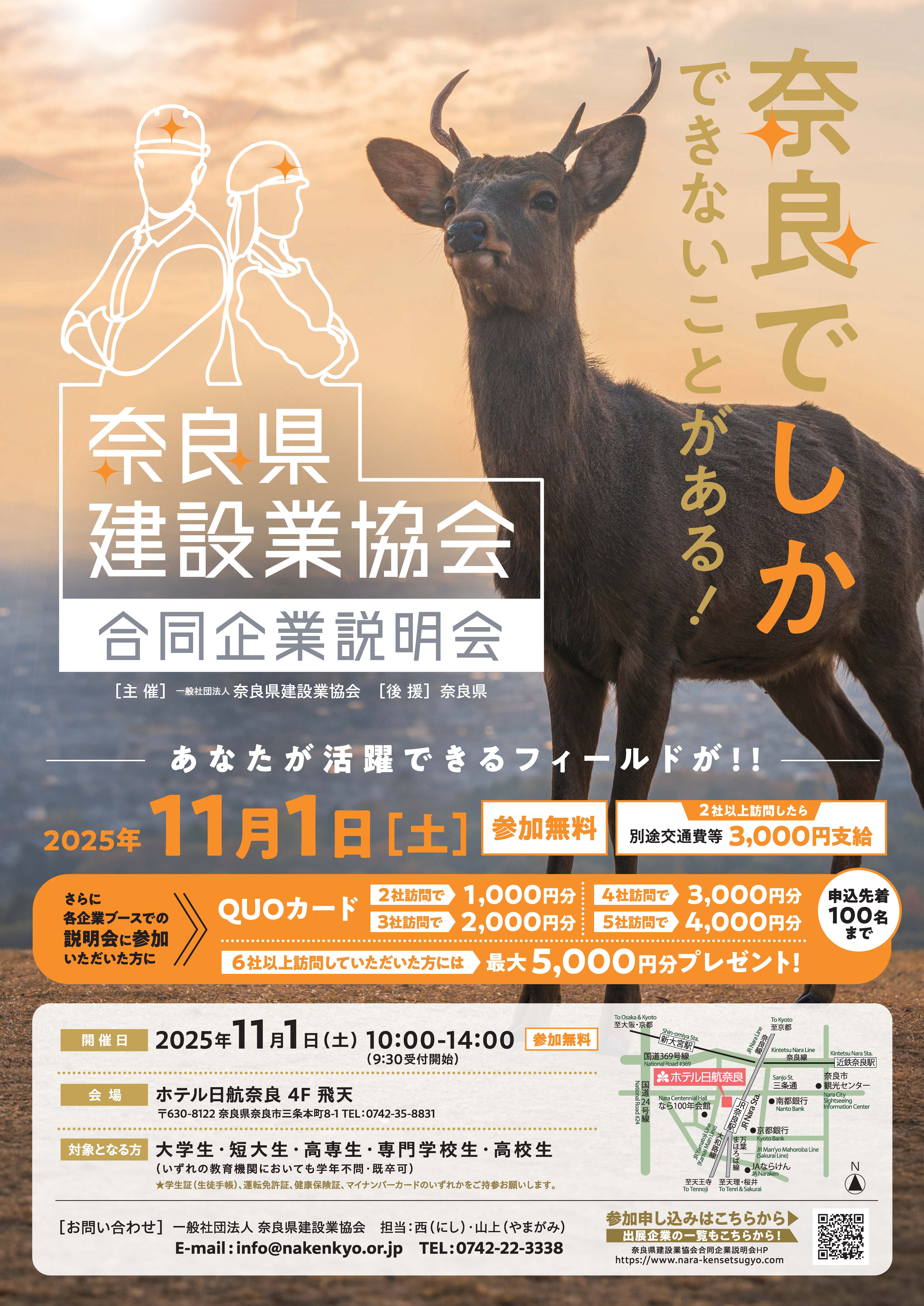 『奈良県建設業協会 合同企業説明会』【 参加無料 】