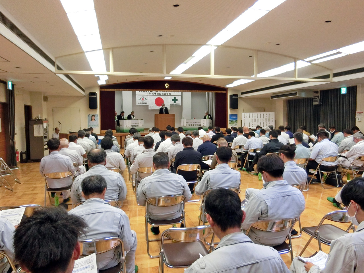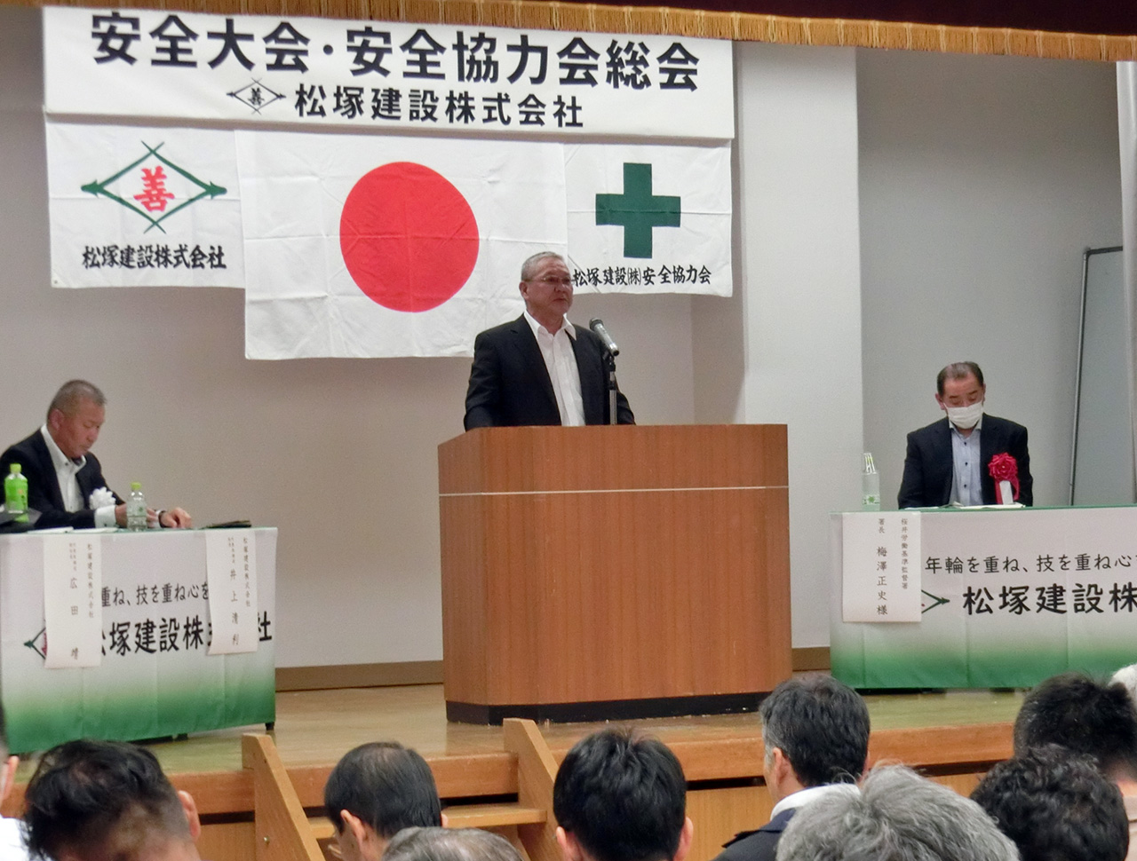 6月14日、桜井労働基準監督署長様、安全協力会辻会長をご来賓にお迎えし、松塚建設役職員及び協力業者の皆さま出席のもと安全大会を開催しました。 職場における労働災害の防止活動の大切さを再確認し、無事故・無災害のみならず、危険ゼロに向けて参加者全員が決意を新たにしました。